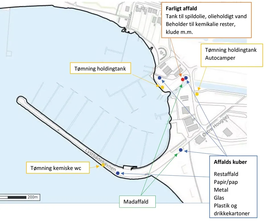 Oversigtskort over Middelfart Marina med placering af faciliteter og klubber